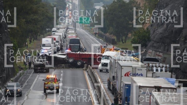 De acuerdo con los primeros reportes, uno de los tractocamiones volcó por completo, bloqueando los dos sentidos de la vialidad y provocando un severo congestionamiento vehicular.