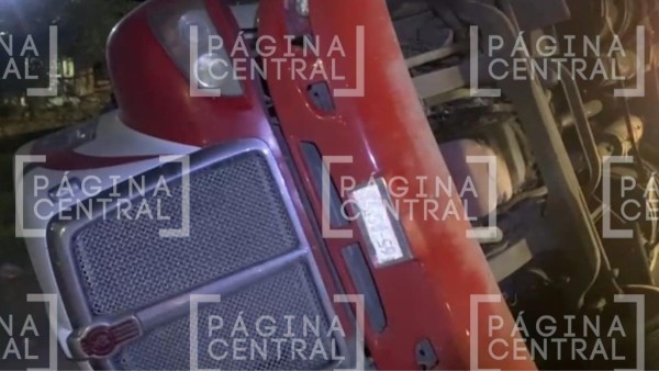 El conductor, quien aparentemente circulaba a exceso de velocidad, intentó dar vuelta en la glorieta, pero el peso de la unidad le ganó y terminó volcado sobre su costado derecho.