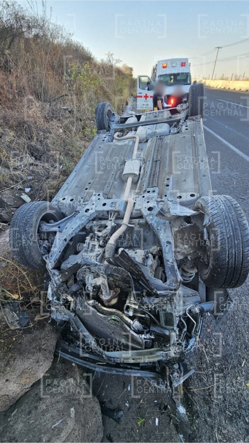 Una joven conductora originaria de León perdió el control de su auto y volcó en la carretera León-Lagos en la curva del pato