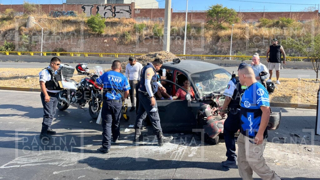 León, Guanajuato - Al menos tres personas resultaron lesionadas tras protagonizar un fuerte accidente vial sobre el Libramiento José María Morelos, a la altura del Fraccionamiento Zanda en León.