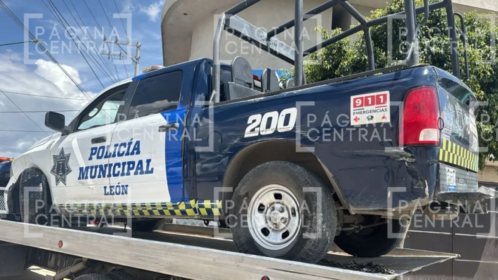 El choque fue a las 2 de la tarde, cuando la unidad 200 de la Policía Municipal iba por bulevar Palmas de Mallorca rumbo a bulevar León II.