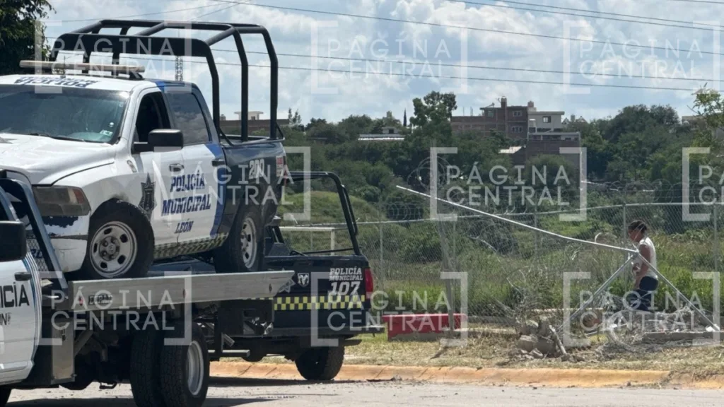 León, Guanajuato - Una patrulla de la Policía Municipal de León sufrió un aparatoso choque la tarde de este jueves luego de que el conductor perdió el control y se estrelló contra la malla ciclónica de un terreno baldío en la colonia Ciudad Satélite.