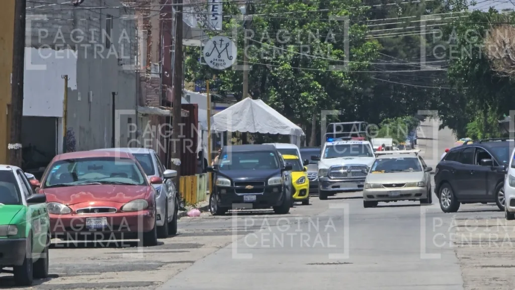 Una patrulla de la Policía resguarda la calle donde velan a Lorena.