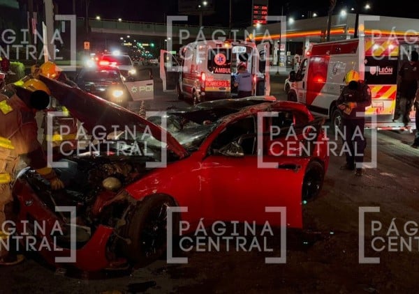 León, Guanajuato - Una aparatosa volcadura de un BMW de color rojo se registró en los cruces de bulevar Paseo de los Insurgentes y bulevar Adolfo López Mateos, generando una fuerte movilización de cuerpos de emergencia.
