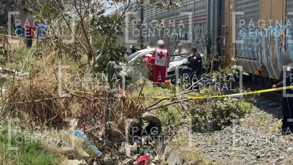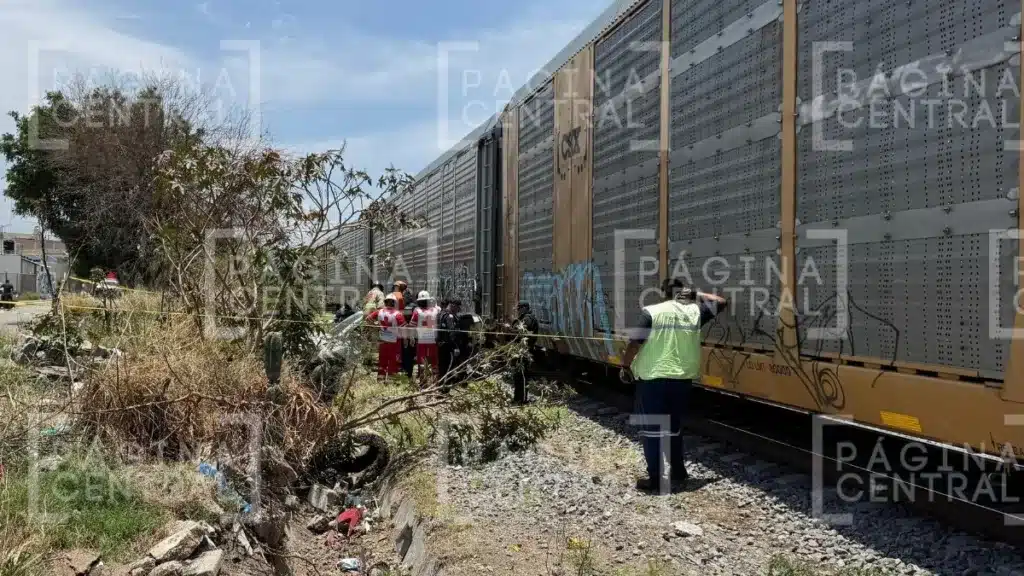 León, Guanajuato - Un accidente con el tren cobró la vida de un conductor, y es que la falta de pericia al querer ganarle el paso terminó en tragedia en la colonia Ex Hacienda de Santiago la tarde de este miércoles.