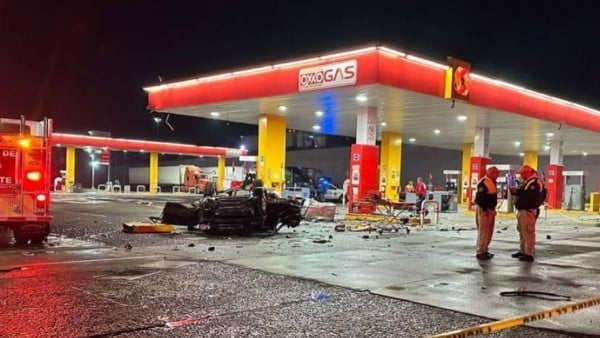 Después el impacto se dio con una jardinera de la gasolinera y debido a la velocidad a la que iban volcó y provocó daños en una bomba despachadora y a una mujer que estaba trabajando.