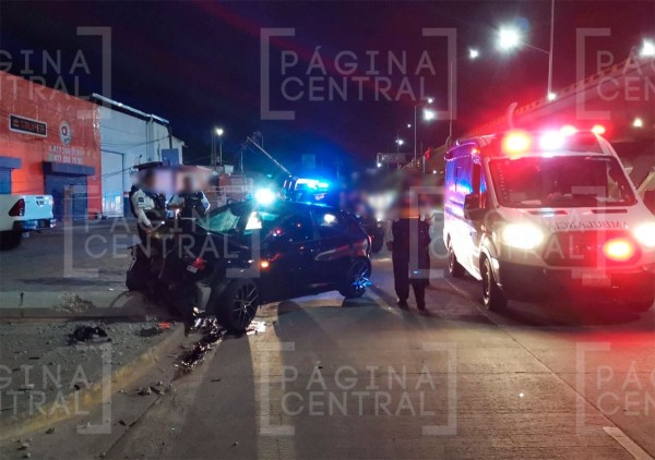 Elementos de la Policía Vial acudieron al cruce con del bulevar José María Morelos con Ibarrilla y localizaron un automóvil, aparentemente un Seat Ibiza de color negro, con el frente completamente destrozado tras el choque.