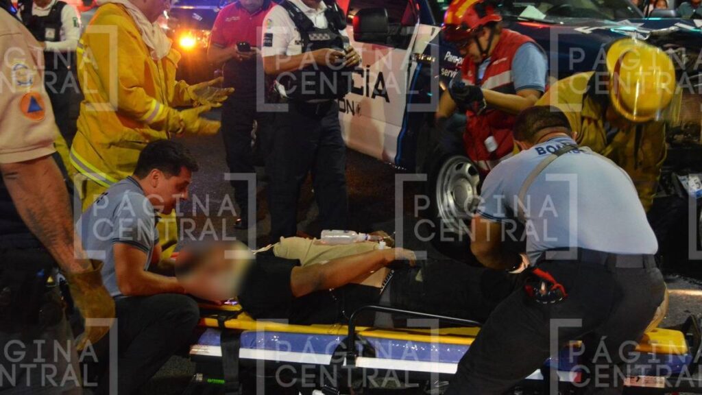 De acuerdo con versiones aun no confirmadas por las autoridades, el oficial se habría pasado un semáforo en rojo, lo que derivó en el choque.Heridos trasladados de urgencia a hospitales