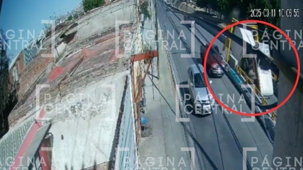 Cámaras de vigilancia de la zona captaron el momento exacto en el que ocurrió el percance. En el mismo video se aprecia que, en ningún momento, el chofer de la unidad de carga disminuyó su velocidad, por lo que el impacto fue de gran magnitud.