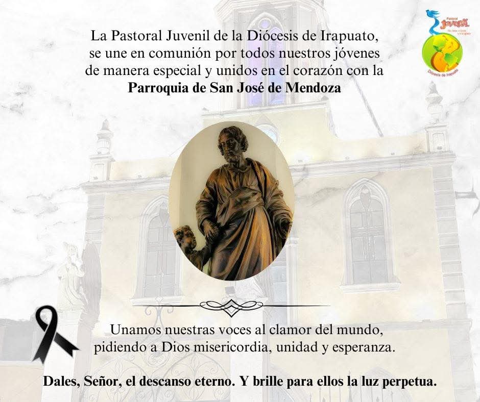 Salamanca, Guanajuato - Las víctimas de la masacre en San José de Mendoza pertenecían al grupo juvenil parroquial de la comunidad. A través de redes sociales, la Pastoral Juvenil Diócesis de Irapuato condenó el asesinato de los jóvenes.