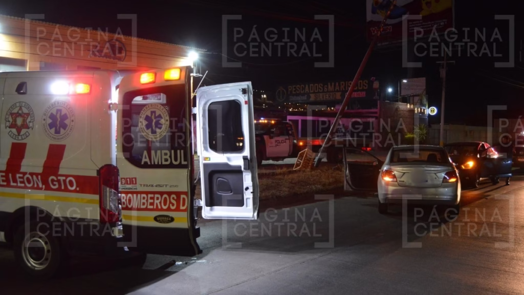 León, Guanajuato - Un hombre que conducía resultó herido tras quedarse dormido y chocar contra un poste en la colonia Fracciones Cañada de Alfaro.