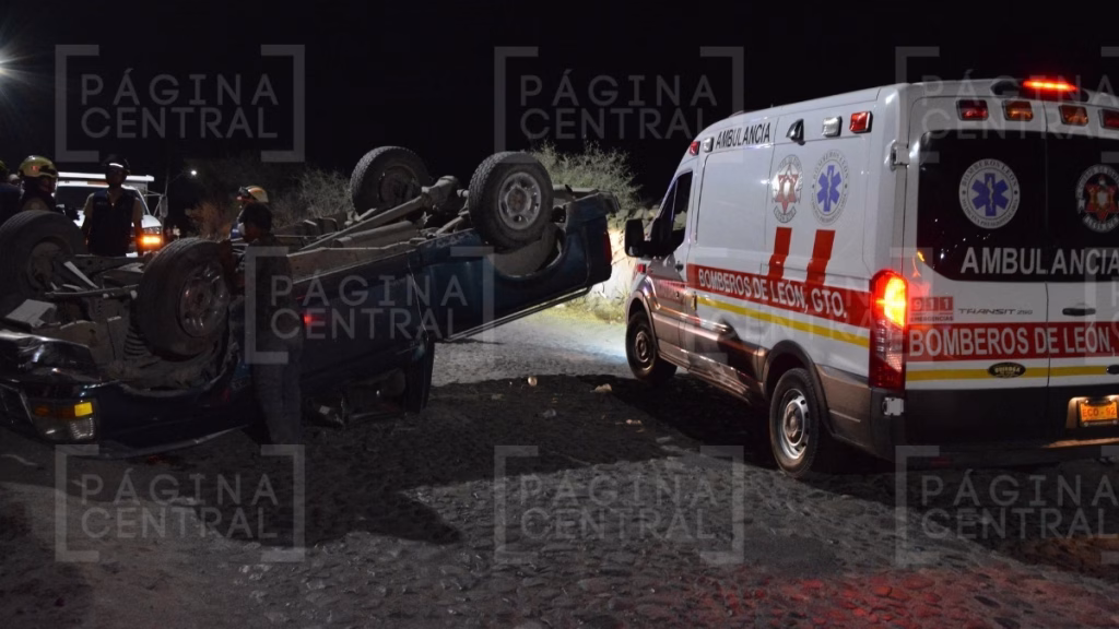 León, Guanajuato - Un conductor que viajaba en estado de ebriedad perdió el control de su camioneta y sufrió una volcadura en la entrada a la colonia Cortijos de la Gloria.