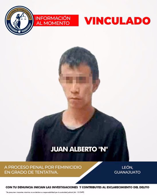 El Ministerio Público especializado en la Investigación de Delitos cometidos en contra de Mujeres por Razones de Género, de la Fiscalía General del Estado de Guanajuato, reunió los elementos de prueba necesarios y solicitó una orden de aprehensión contra el agresor, a quien detuvieron y presentaron ante un juez.
