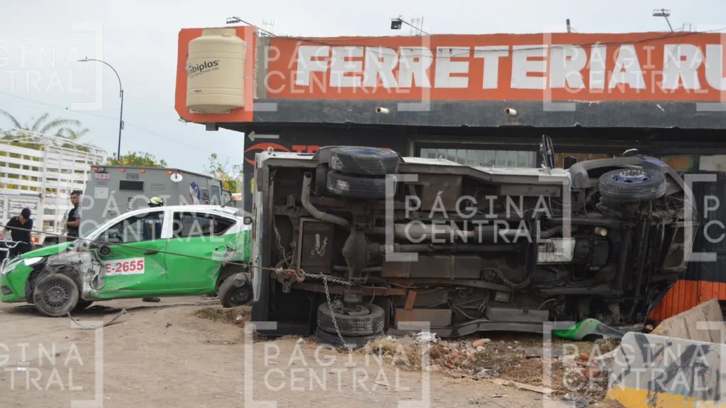 El taxi con número económico LE-2655 esperaba para unirse a la vialidad cuando la camioneta, con tres ocupantes a bordo, perdió el control e inició la colisión.Te puede interesar: ¡Impactante! Camioneta de valores choca con taxi, lo arrastra y termina volcada