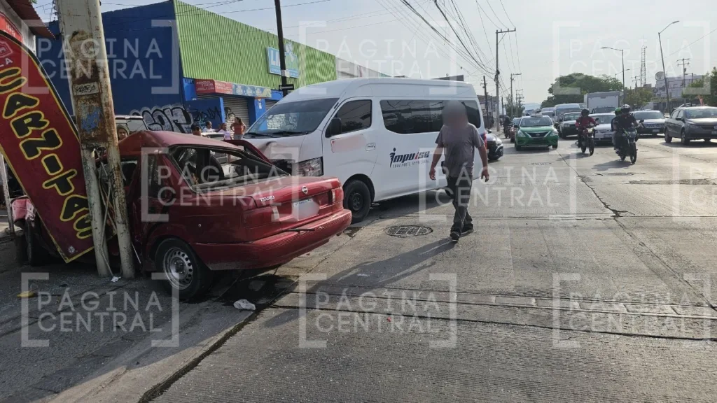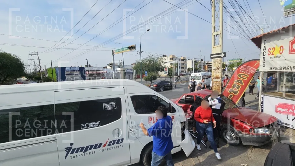 De acuerdo con la información preliminar, el Tsuru se impactó en el cruce con Cerro del Gigante por una camioneta de transporte que ya se había pasado un semáforo anterior en rojo.