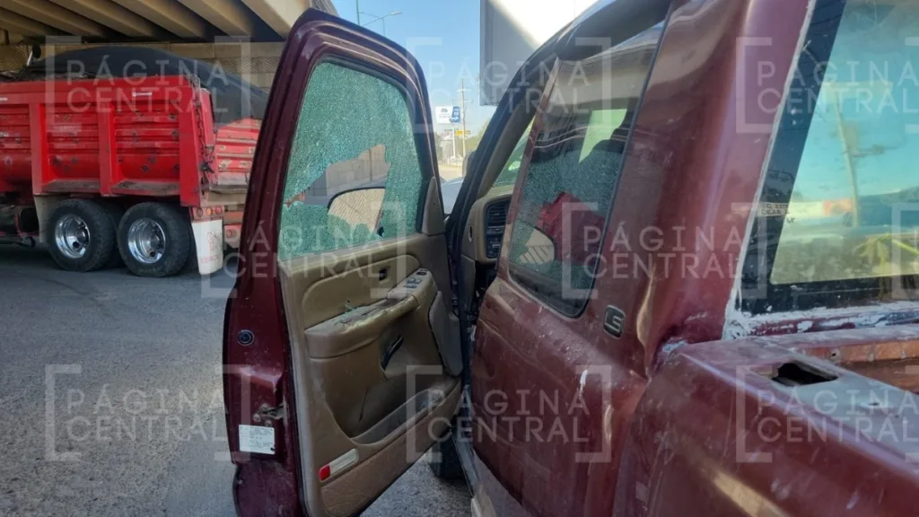 La ventanilla del lado del conductor quedó totalmente destrozada por los balazos y hasta algunas prendas de vestir ensangrentadas también quedaron sobre la vialidad.