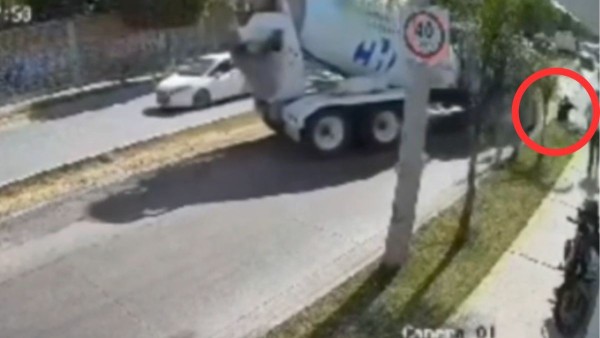 León, Guanajuato - Un video muestra el momento en que una revolvedora atropella y mata a un joven identificado como Bryan, de 24 años, sobre el bulevar San Juan Bosco, casi en la esquina con Yacimiento, en la colonia Cima Diamante.
