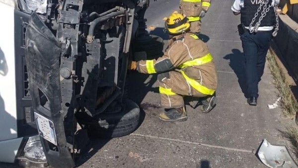 El hecho ocurrió alrededor de las 9:00 de la mañana, cuando el conductor perdió el control de la unidad y terminó recostado sobre uno de sus costados en medio de la vialidad. Afortunadamente, no se reportaron personas lesionadas.