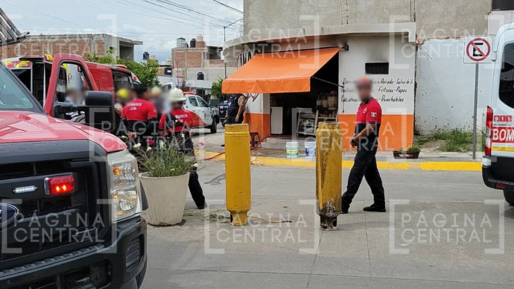 León, Guanajuato - Un flamazo en un tanque de gas causó un incendio en un local de botanas en la colonia Bosques de la Pradera la tarde de este lunes.