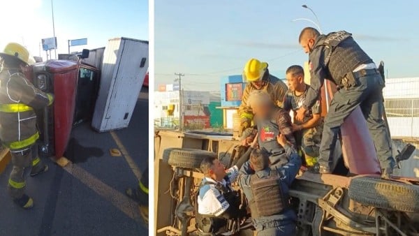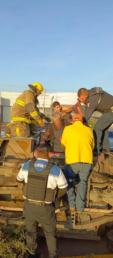 El percance ocurrió cuando un Nissan rojo terminó volcado en plena vialidad. La unidad era conducida por Gerardo, de 85 años de edad, quien resultó lesionado.