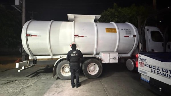 Los elementos de la PEC realizaban patrullajes en dicha vía cuando notaron la presencia de la pipa, misma que se encontraba en aparente estado de abandono en una estación de servicio.