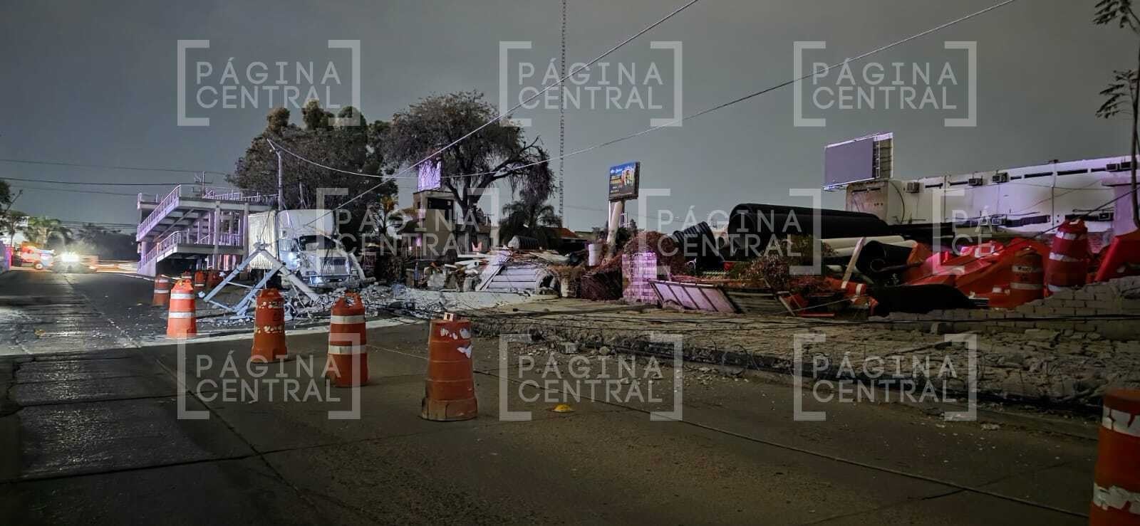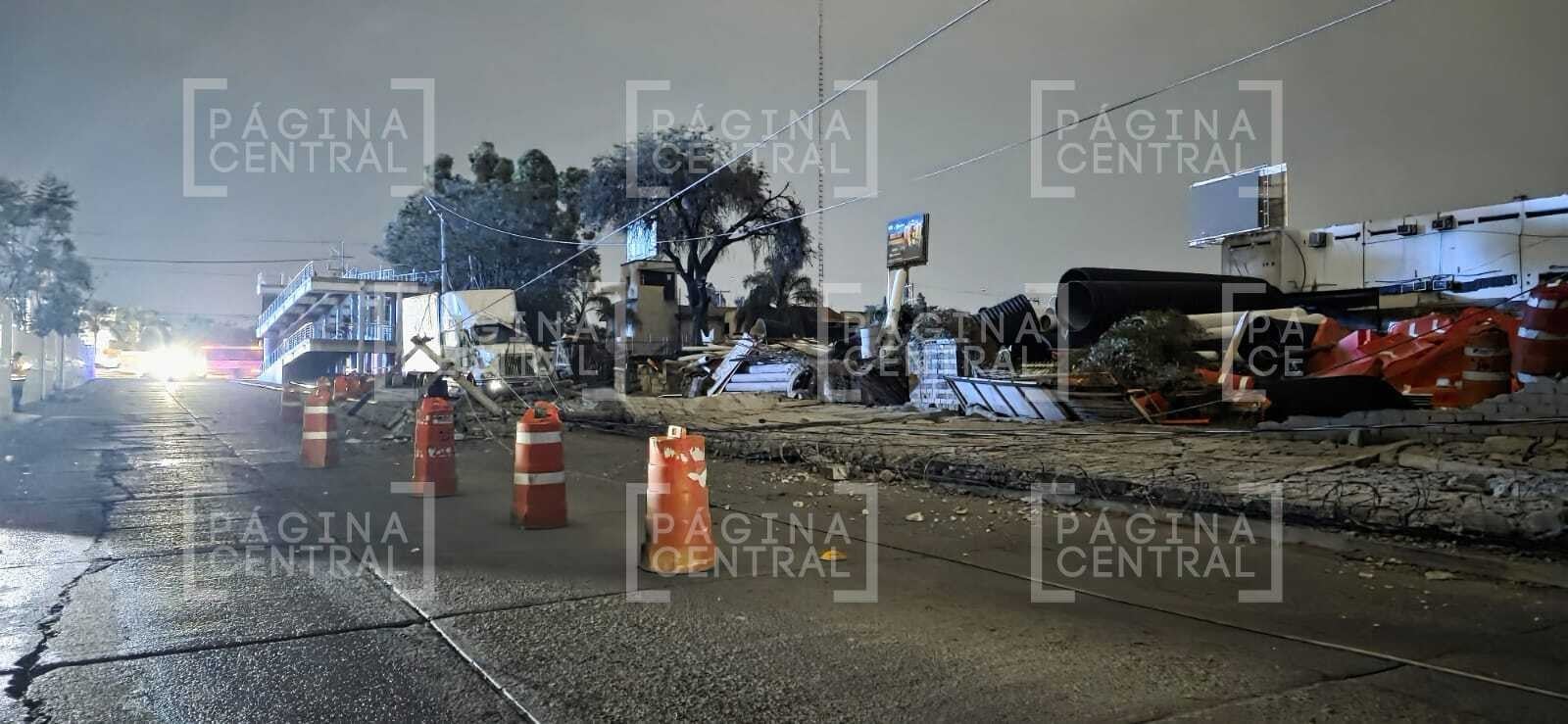 El escombro y el material de construcción quedaron esparcidos sobre la vía pública, bloqueando el paso por el bulevar Atotonilco.