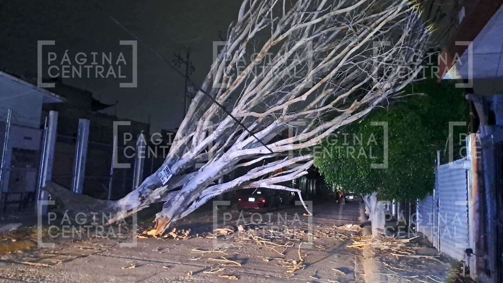En la colonia Agua Azul, específicamente en la calle Saja, un árbol de gran magnitud colapsó sobre el cableado de alta tensión.