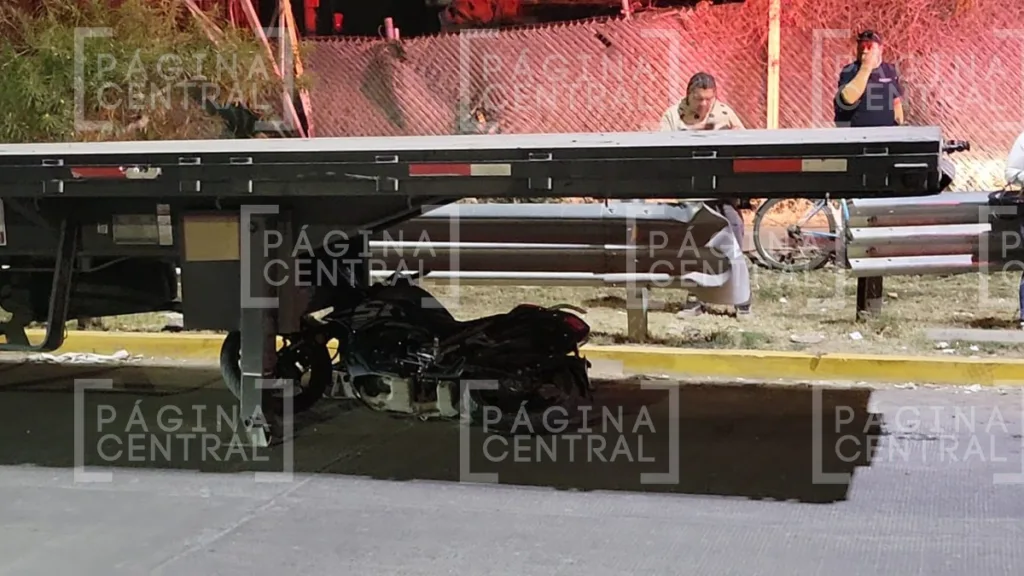 Según los primeros informes, el conductor de la motocicleta circulaba con dirección al Libramiento cuando impactó de lleno contra el remolque que obstruía uno de los dos carriles de la vialidad.