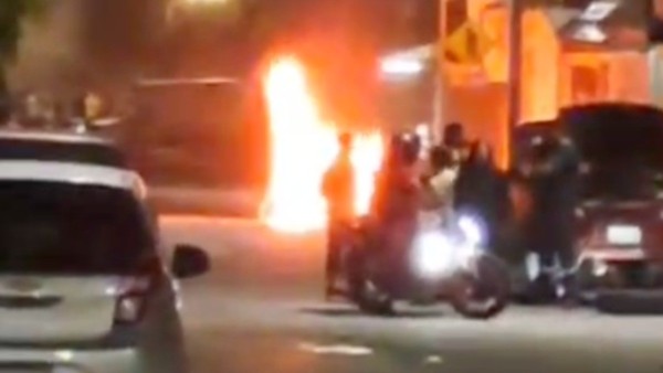 En el video difundido a través de redes sociales se puede observar cómo la motocicleta se está quemando a mitad de la calle, mientras las personas continúan su camino observando los hechos.