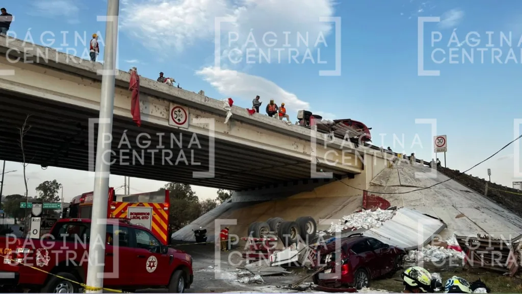 León, Guanajuato - Ya fueron identificadas las dos personas fallecidas en el trágico accidente en el bulevar Juan José Torres Landa en la carretera San Pancho-León cuando un tráiler cargado con 30 toneladas de azúcar y una camioneta familiar cayeron del puente de la Maxipista.