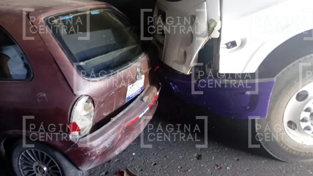 El camión urbano con número económico LE 975, golpeó por alcance a un Honda City blanco y a un Chevy guinda; el Honda, a su vez, golpeó un Aveo negro, siendo cuatro vehículos los involucrados.