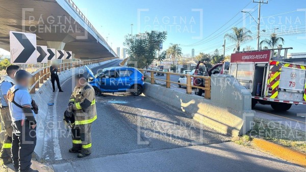 Según los primeros reportes, al realizar la maniobra, el vehículo subió a la guarnición y golpeó la esquina de la contención, lo que provocó que la unidad terminara con las llantas hacia arriba.