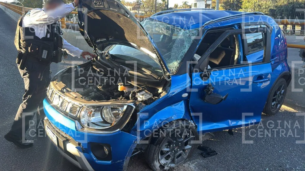 El accidente ocurrió cuando el conductor de un automóvil Suzuki azul intentaba incorporarse a la parte alta del Libramiento en dirección hacia Balcones del Campestre.