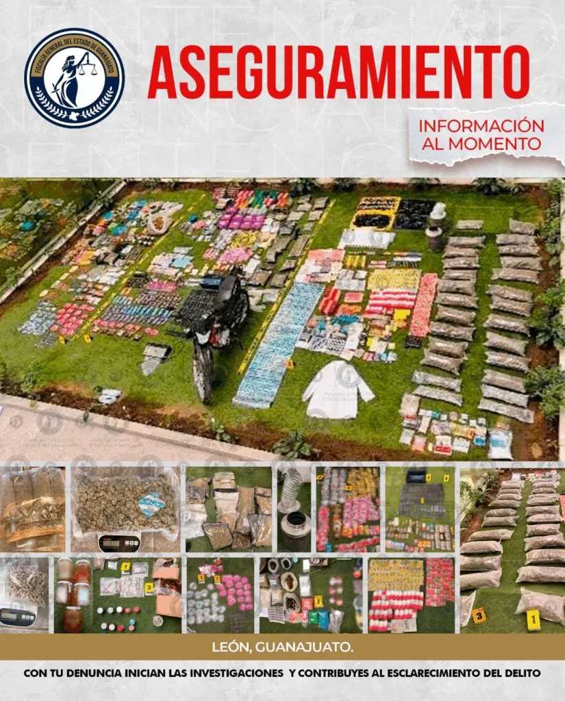 León, Guanajuato - Derivado de una denuncia ciudadana, la Fiscalía General del Estado ejecutó un cateo que permitió desmantelar un laboratorio clandestino y asegurar diversas sustancias ilícitas en la colonia Brisas del Carmen, en la ciudad de León.
