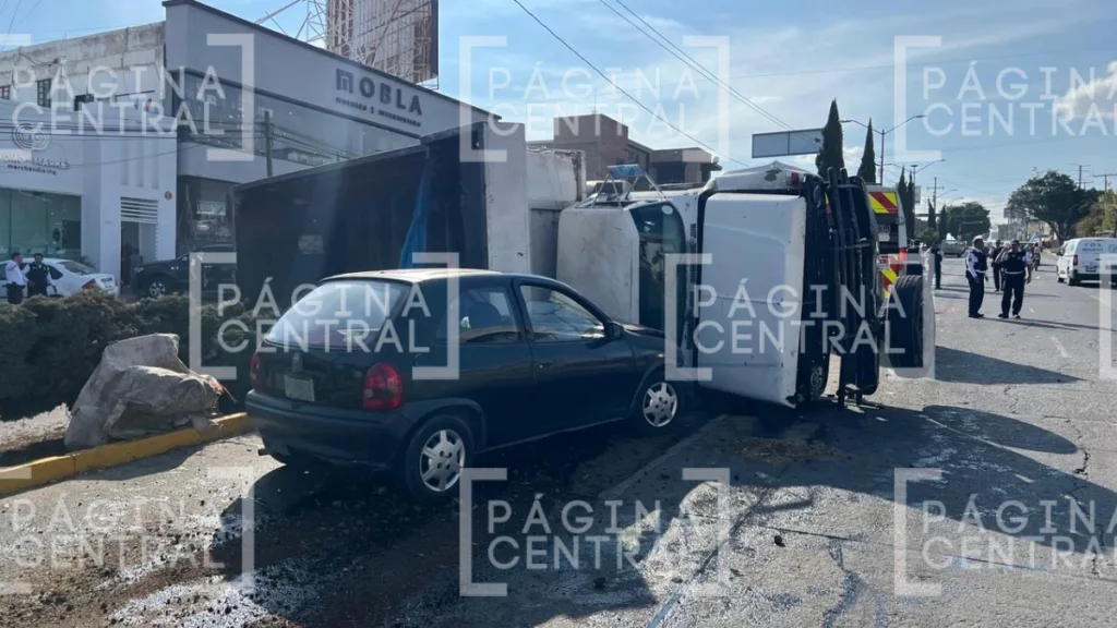 La pesada unidad terminó cayendo sobre varios vehículos, generando un fuerte impacto que alarmó a automovilistas y peatones que circulaban por esta concurrida vialidad.