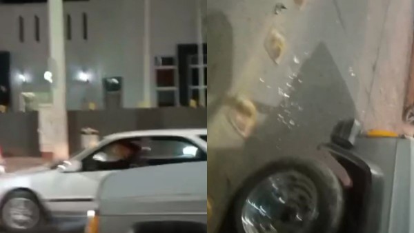 En las imágenes también se observa cómo los ocupantes del vehículo son amenazados, incluso con armas de fuego, para evitar que grabaran lo ocurrido, mientras la motocicleta permanecía atorada bajo el chasis.