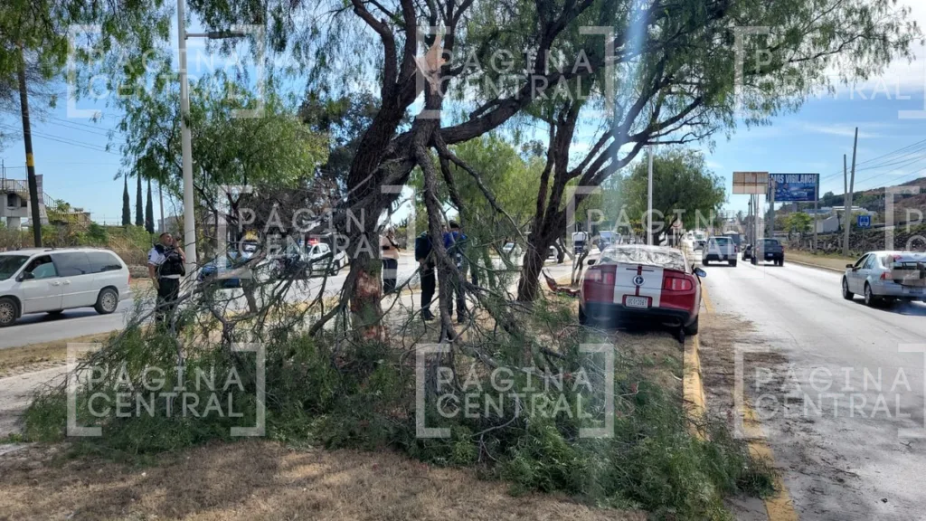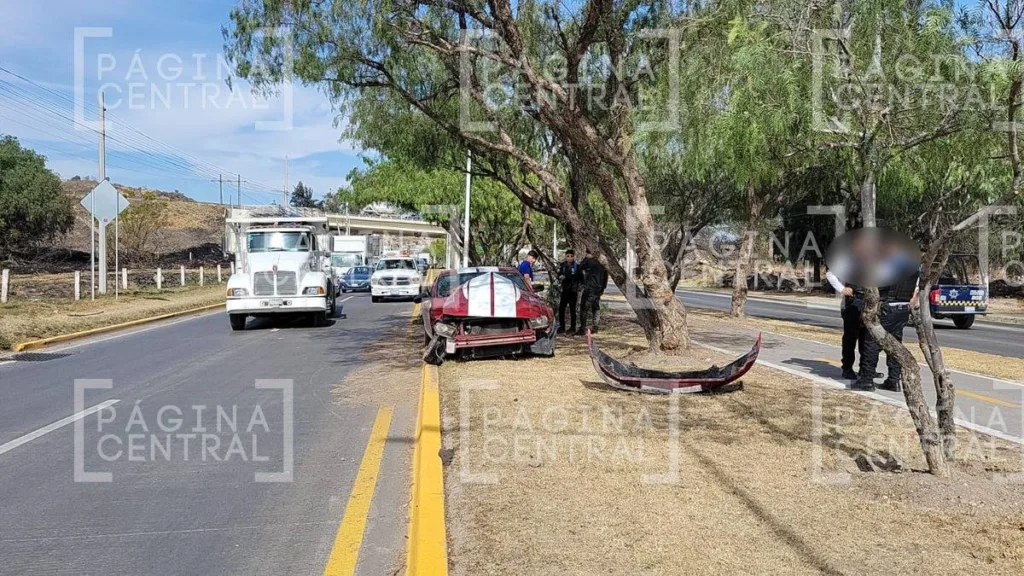 León, Guanajuato - Un vehículo deportivo se estrelló de frente contra un árbol sobre el Ecobulevar, en la salida de León hacia San Francisco del Rincón, ocasionando un severo caos vial.