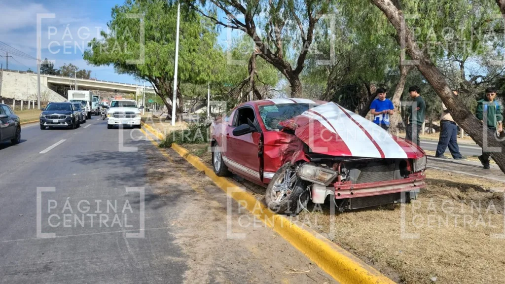 El automóvil involucrado, un Ford Mustang, presenta daños totales en la parte frontal, aunque la estructura del toldo y la cajuela permanecieron intactas tras el impacto.