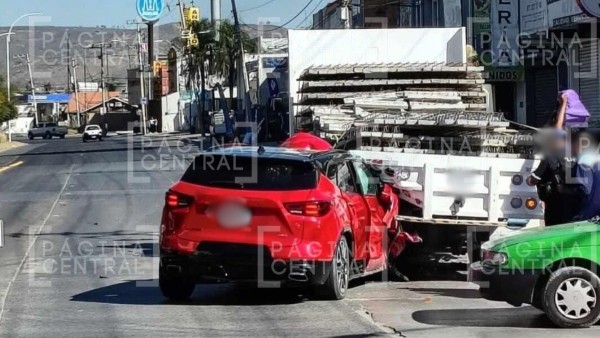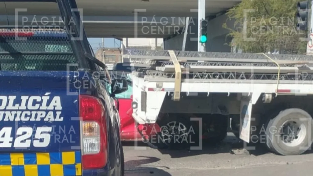 De acuerdo con los primeros reportes, el conductor de un vehículo rojo no habría logrado frenar a tiempo e impactó por alcance a un camión que transportaba material para construcción.