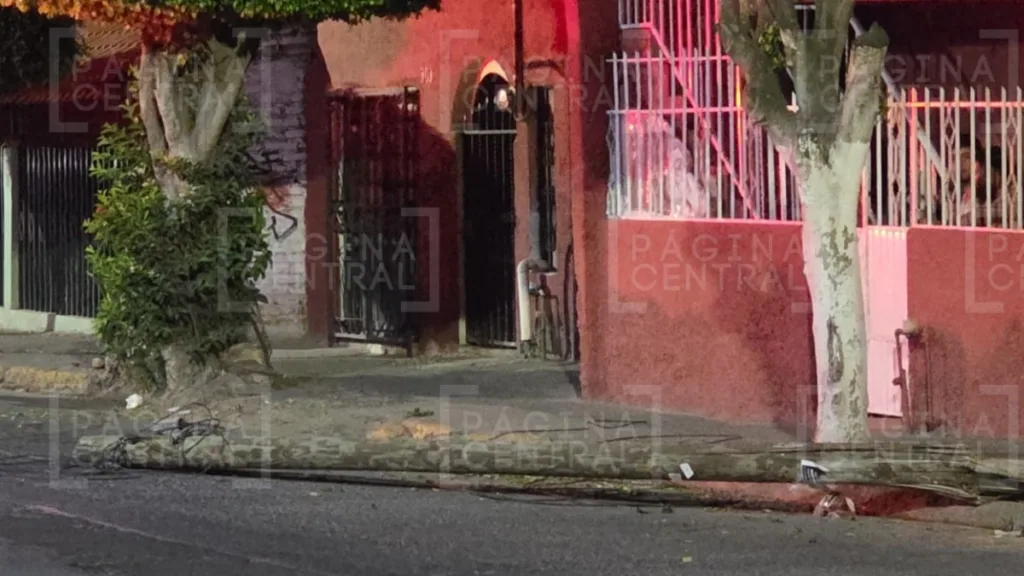 Cerca de las 11 de la noche, el conductor de un camión de volteo protagonizó un choque y golpeó el poste ubicado entre las calles Andalucía y Nueva Galicia; la fuerza del golpe lo derribó y afectó el cableado de telefonía de la zona.