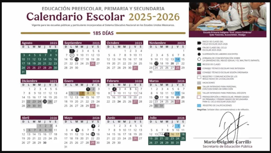 Periodos de vacaciones y días oficiales del ciclo escolar 2025-2026