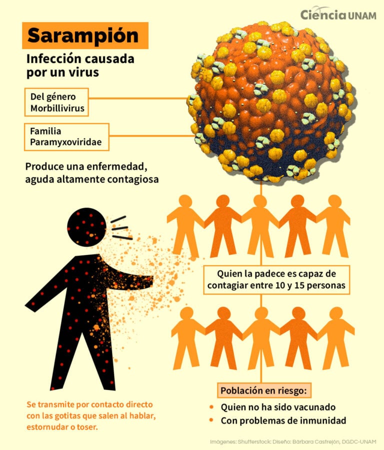 El sarampión se transmite a través de la saliva expulsada al hablar, estornudar o toser. Se estima que una persona infectada puede contagiar entre 10 y 15 individuos no vacunados. Además, la enfermedad puede causar complicaciones graves como diarrea intensa, infecciones de oído, ceguera, neumonía y encefalitis.