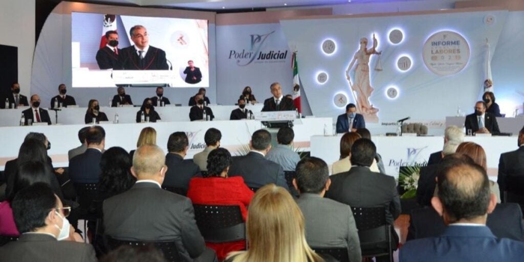 Héctor Tinajero Muñoz rindió su informe anual de labores 2021 frente al Pleno del Supremo Tribunal de Justicia y el Consejo del Poder Judicial del Estado de Guanajuato.