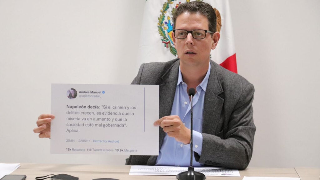 Mauricio Ortiz Proal aprovechó su intervención para mostrar una serie de tuits de Andrés Manuel López Obrador cuando era dirigente opositor para evidenciar su incongruencia ahora que está al frente del país, en diversos temas.