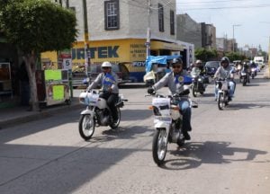 La caravana partió de la Unidad Deportiva Norte y recorrió las principales calles del municipio, donde se fueron sumando más participantes, además portaron carteles para hacer conciencia de respetar las señales viales y portar el casco.