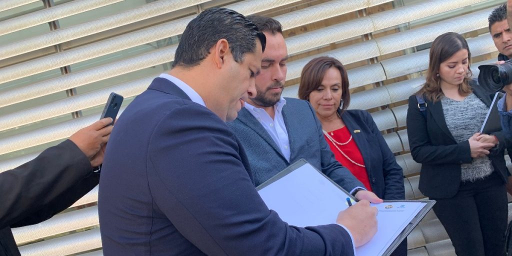 Previo a la reunión con el Consejo Estatal de Seguridad, el gobernador Diego Sinhue Rodríguez firmó el convenio.[/caption]