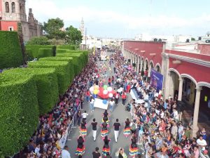 Alcalde convive con asistentes a desfile.[/caption]