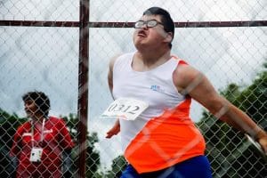 Esaúl Picón Ávalos, tiene un grado de síndrome de Down que no le permite hablar bien, pero no así darse a entender y haberse desarrollado en el deporte de sus padres: lanzamiento de bala y disco.