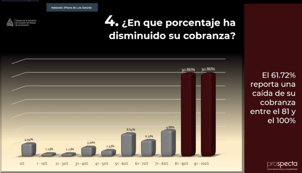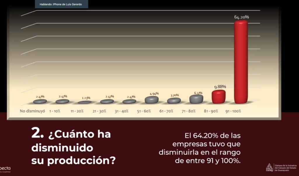 El 61.72% de los agremiados a la CICEG reportó una caída de su cobranza entre el 81 y 100%, por lo que se prevé que la próxima semana pudiera crecer significativamente el despido de más trabajadores del sector calzado.