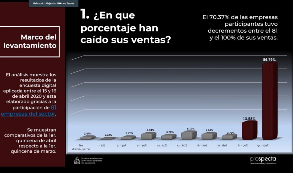 El líder de los zapateros advirtió que el 30% de las 850 empresas que permanecen continúan con ventas, es porque contaban con un stock de productos, además de la entrega de mercancía y pedidos que ya tenían antes de la contingencia en materia de exportación, principalmente.